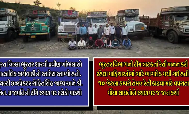 > 10 ડમ્પર + મોંઘા રેતી-ઉલેચ સાધનો જપ્ત