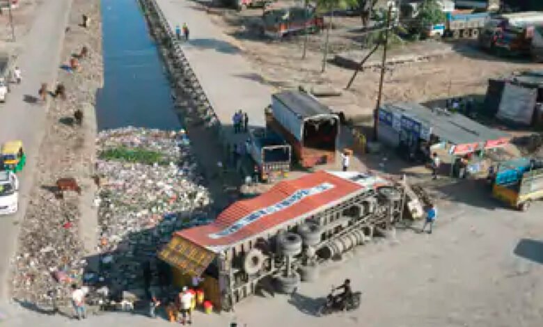 આજરોજ એક કન્ટેનર ટ્રક કેનાલ નજીક વળાંક લેતી વખતે ચાલકે સ્ટિયરિંગ પરથી કાબૂ ગુમાવ્યો , જેના કારણે કન્ટેનર રોડની બાજુમાં પલટી મારી ગયું. ઘટનામાં સદનસીબે કોઈ જાનહાની થઈ નથી, પરંતુ કન્ટેનર પલટી જતાં હાઇવે પર ટ્રાફિક લાંબા સમય સુધી અટકી ગયો હતો.