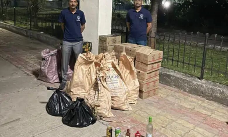 પોલીસે સ્થળ પરથી ખાખી પૂંઠાના બોક્સ અને પ્લાસ્ટિક કોથળીઓમાંથી કુલ 1308 નંગ ભારતીય બનાવટના વિદેશી દારૂ અને બિયરના ટીન** કબજે કર્યા હતા.