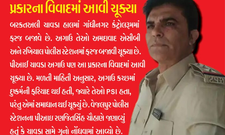 લિફ્ટ બંધ થતાં જ ખભા પર હાથ મૂકીને અડપલાં કર્યાનું યુવતીનું નિવેદન; ગાંધીનગર કંટ્રોલરૂમમાં ફરજ બજાવતા PI બરકતઅલી ચાવડા સામે છેડતીનો કેસ નોંધાયો