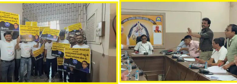 સુરત શિક્ષણ સમિતિની સામાન્ય સભામાં હોબાળો: BLO શિક્ષકો પર વધતા દબાણ મુદ્દે વિપક્ષ આક્રમક, AAP કાર્યકરો પણ મેદાનમાં